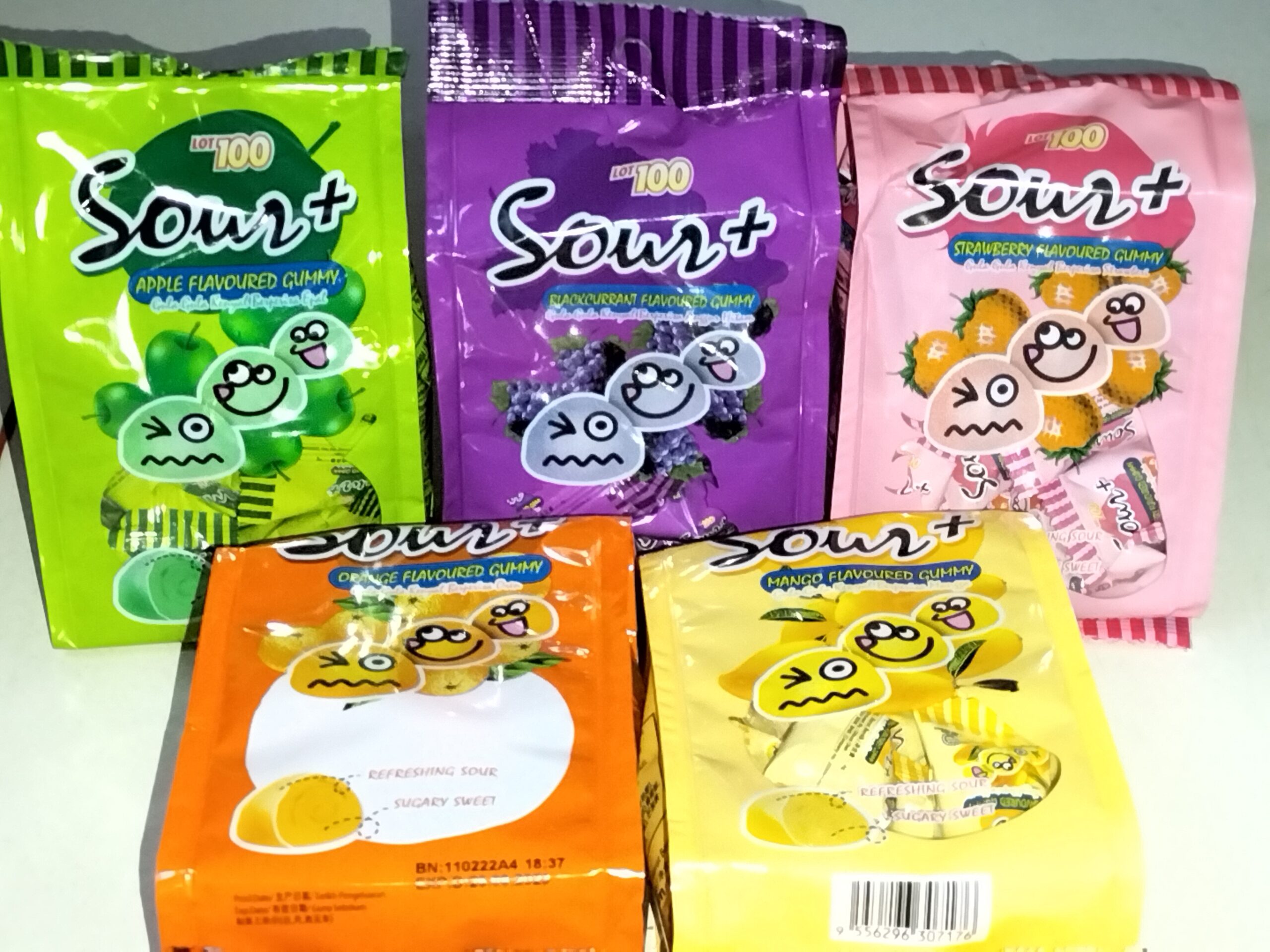/ [ 100g x 6pkt ] Lot100 Sour Gummy [ Blackcurrant / Mango / Apple / Orange / Strawberry ] Halal