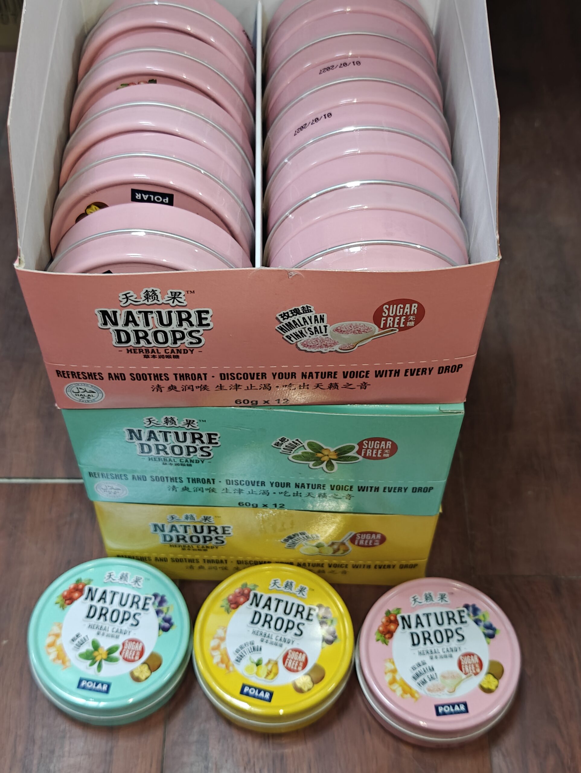/ [ 60g x 12Tins ] Polar Nature Drops Herbal Candy [ Halal ] [ Honey Lemon / Himalayan Pink / Loquat ] Sugar Free
