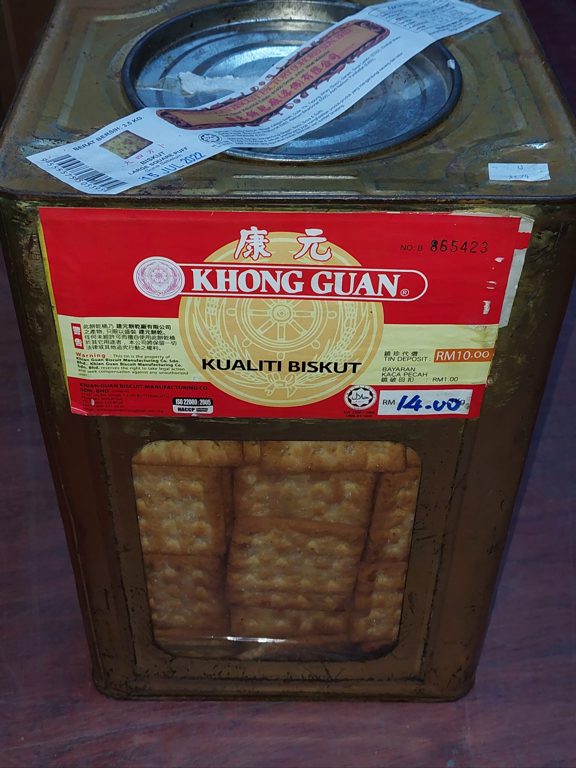 [ 3.5KG ] Khong Guan Plain Biscuit Cracker 3kg with Metal Tin [ Refundable Tin @ $3.00 ]